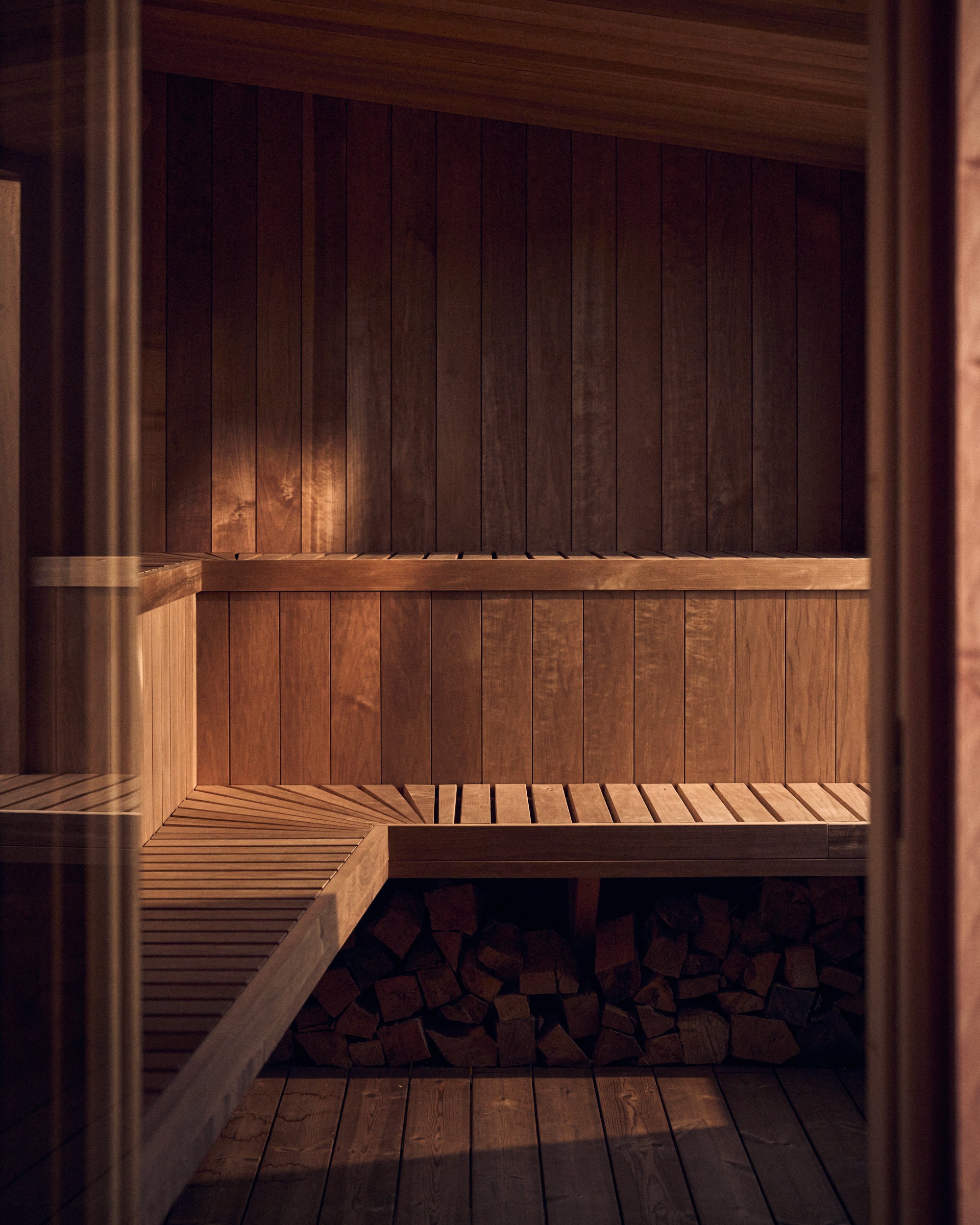The sauna acts as a natural meeting point: a modern hearth on ancestral land.